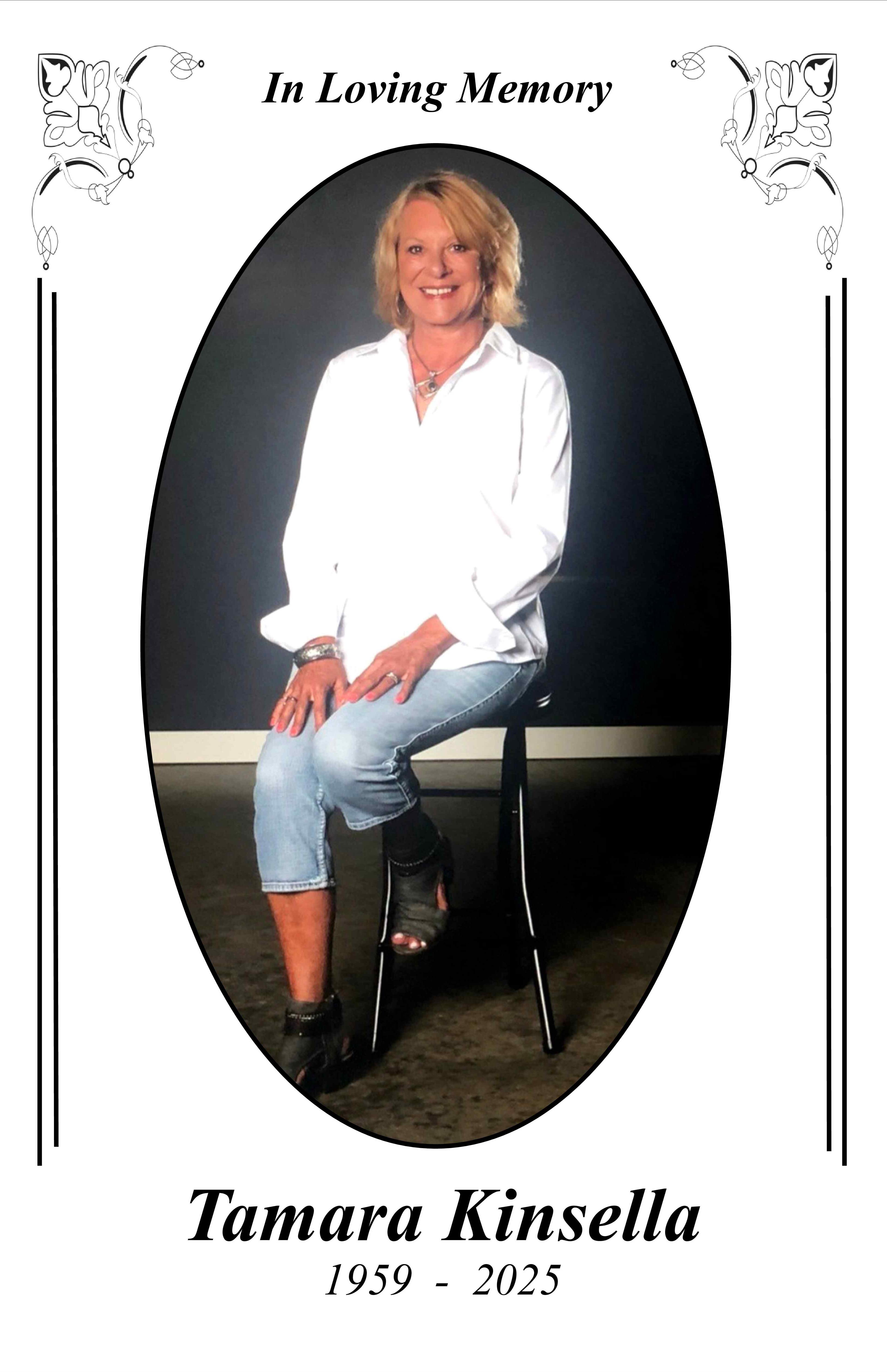 The memory of Tamara Jo Kinsella will continue to light the hearts of those she touched with her kindness, creativity, and unwavering spirit. As we gather to honor her life, the following services will take place: a visitation on Thursday, October 9, 2025, from 5:00 PM to 7:00 PM at Larson Funeral Home of Pelican Rapids; and funeral services on Friday, October 10, 2025 at Trinity Lutheran Church of Pelican Rapids, beginning with visitation at 10:00 AM and formal services at 11:00 AM. She will be laid to rest in Sunset Memorial Gardens Cemetery of Fargo after a time of fellowship at the church.